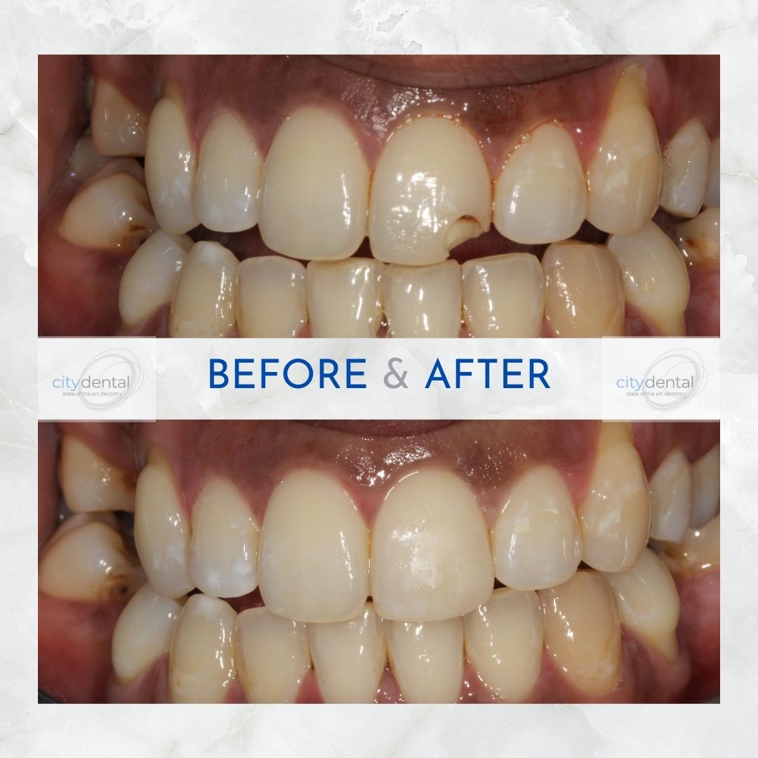 Using white filling material, we can change the shape, colour, and disguise gaps in the teeth. The process is minimally invasive, quick, and often completed in a single visit, making it a versatile and affordable option for improving your smile.
