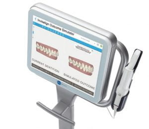 During the impression process, you can breathe or swallow as you normally would. You can even pause during the process if you need to sneeze or just want to ask a question. The scanner gives us a 3D model of your mouth that can be used for your dental services including the Invisalign Outcome Simulator to show you what your new smile might look like.